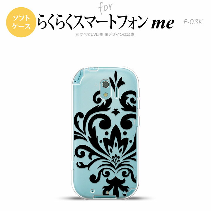 【F03K】【スマホケース/スマホカバー】F03K スマホケース らくらくスマートフォンme F-03K カバー ダマスク柄大B 黒 nk-f03k-tp1034【メール便送料無料】