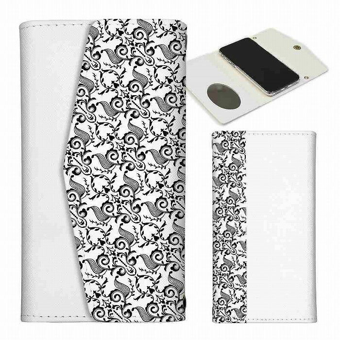 全機種対応 iPhone11ProMax iPhoneXS iPhoneXR対応 レター型 ミラー付 鏡付 スマホケース 手帳型 レターケース iPhoneXS Max iPhoneXR iPhone8plus Galaxy S9 SC-02K対応 モノクロ シンプル ダマスク柄 大人可愛い レディース